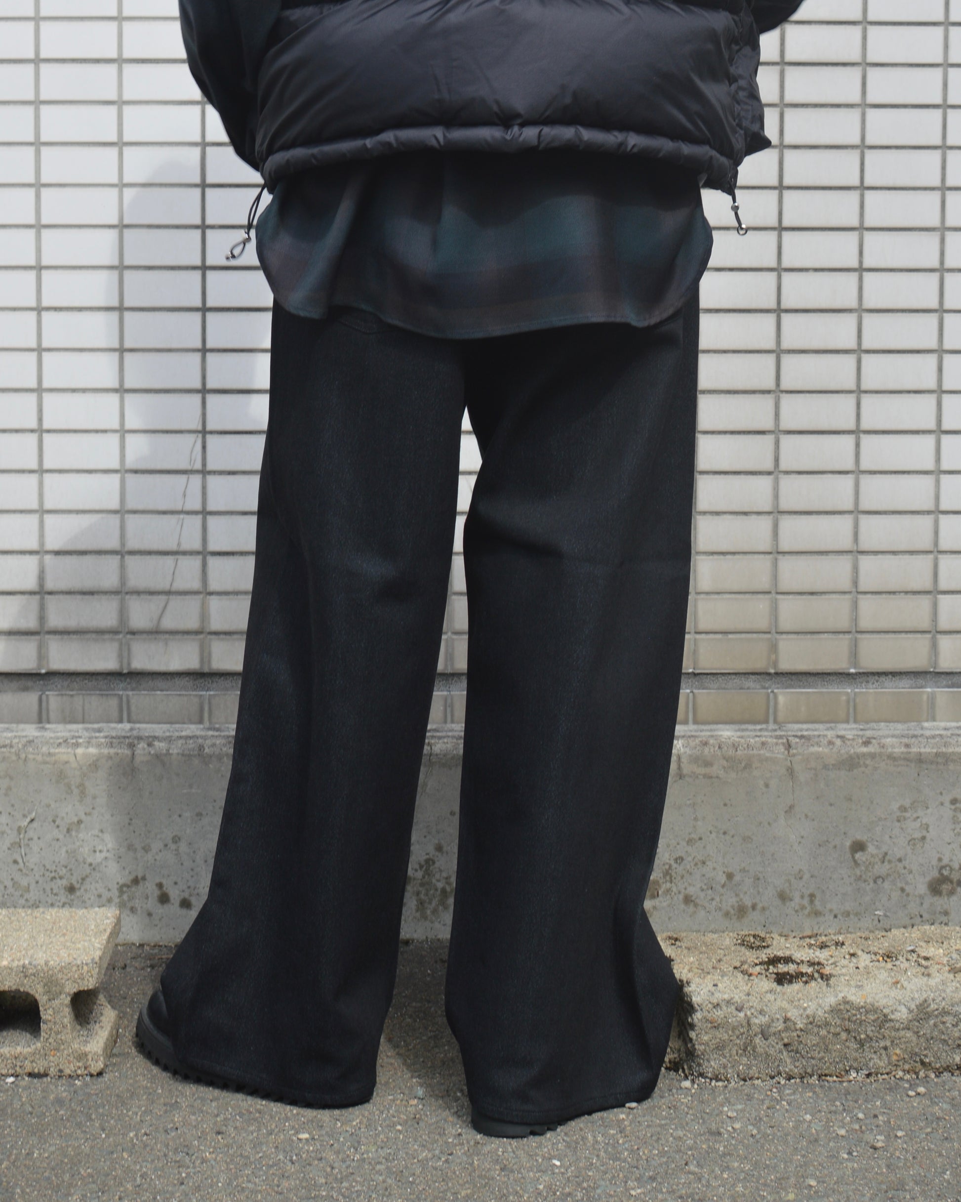 SUGARHILL TWISTED HEATHER DENIM PANTS WIDE CUT BLUE BLACK