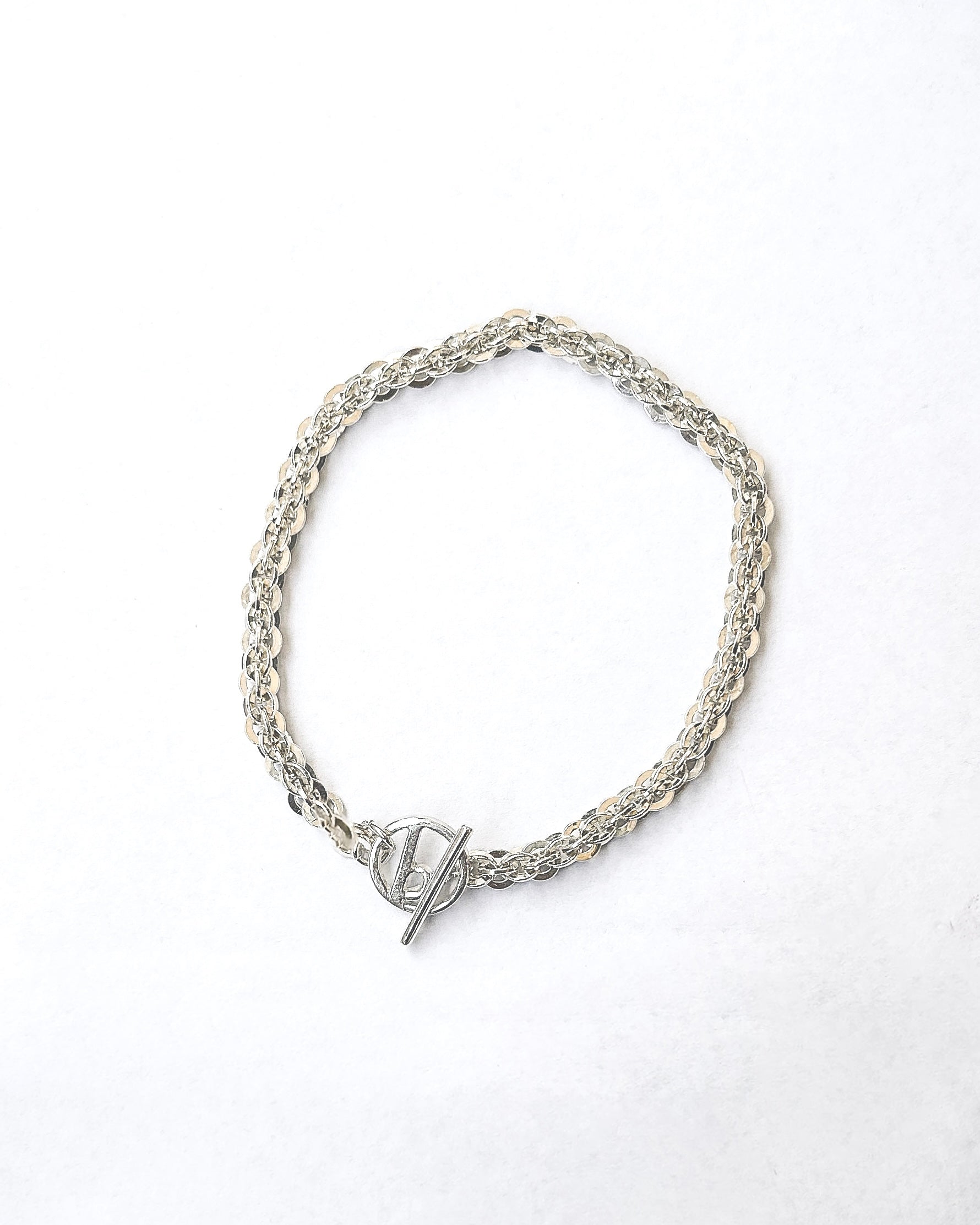 新作のスパンコールチェーンを豪華にも丸々採⽤した⼀本。その独特な輝きは、他のシルバーとは⼀線を画します。